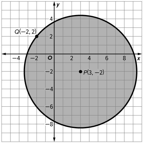 The circumference of the circle is about ___ units and its area is about ___ square units. Round to the nearest tenth.