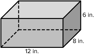 The surface area of the solid shown is __  square inches and its volume is __ cubic inches.
