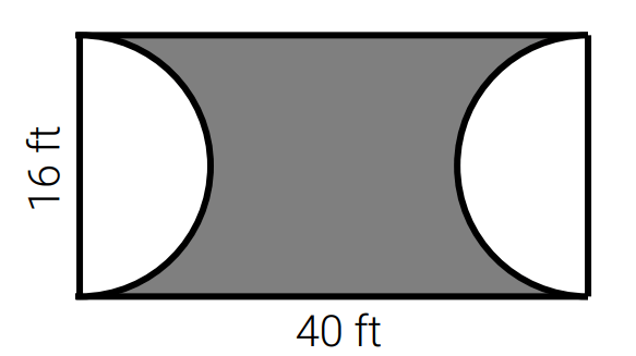 Janice is painting a portion of the gymnasium court. If Janice paints the shaded area, then how many square feet will she paint? Use 3.14 for pi.