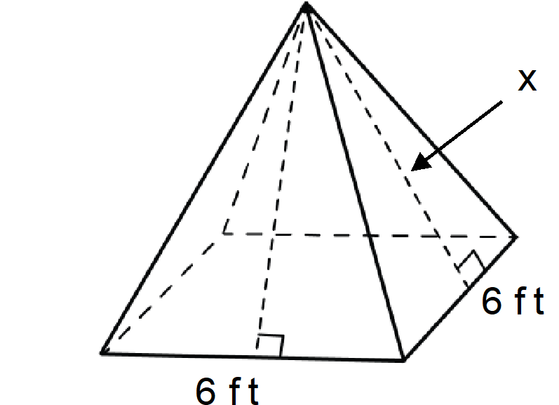 The pyramid below has a total surface area of 120 ft2. Find the measure of the lateral height.