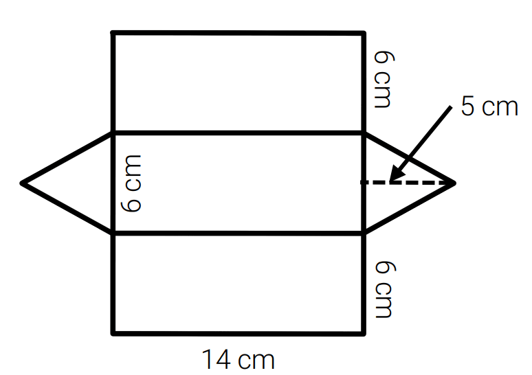 The net depicts a triangular prism. What is the lateral surface area of the prism?