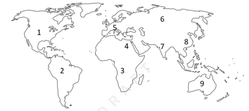 Colombia, Brazil, and Peru are in which continent?
