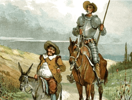 ¿Cuáles son los nombre de los personajes principales de la famosa obra literaria de Miguel de Cervantes?