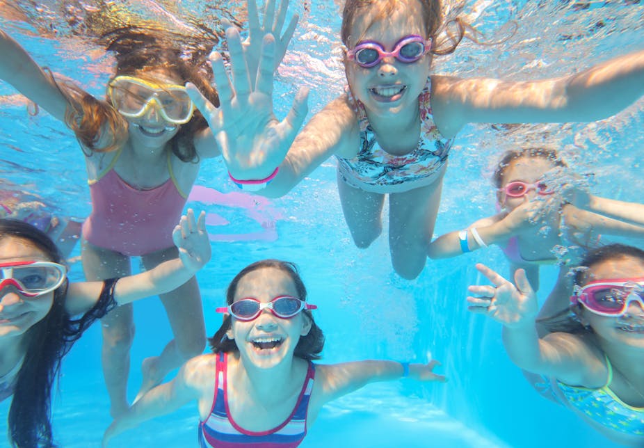 They swim in the pool.