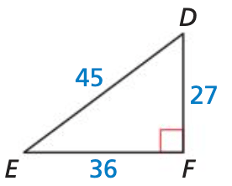 Find cos D. Write each answer as a fraction and as a decimal rounded to four places.