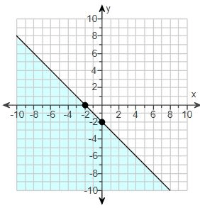Graph must contain a horizontal dashed line, that passes through the point (0, -5), shaded above.