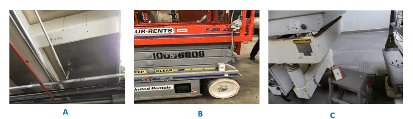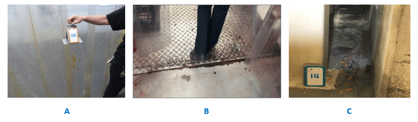 Which photo does not show a PEM location that is DIFFICULT TO CLEAN DUE TO LOCATION?
