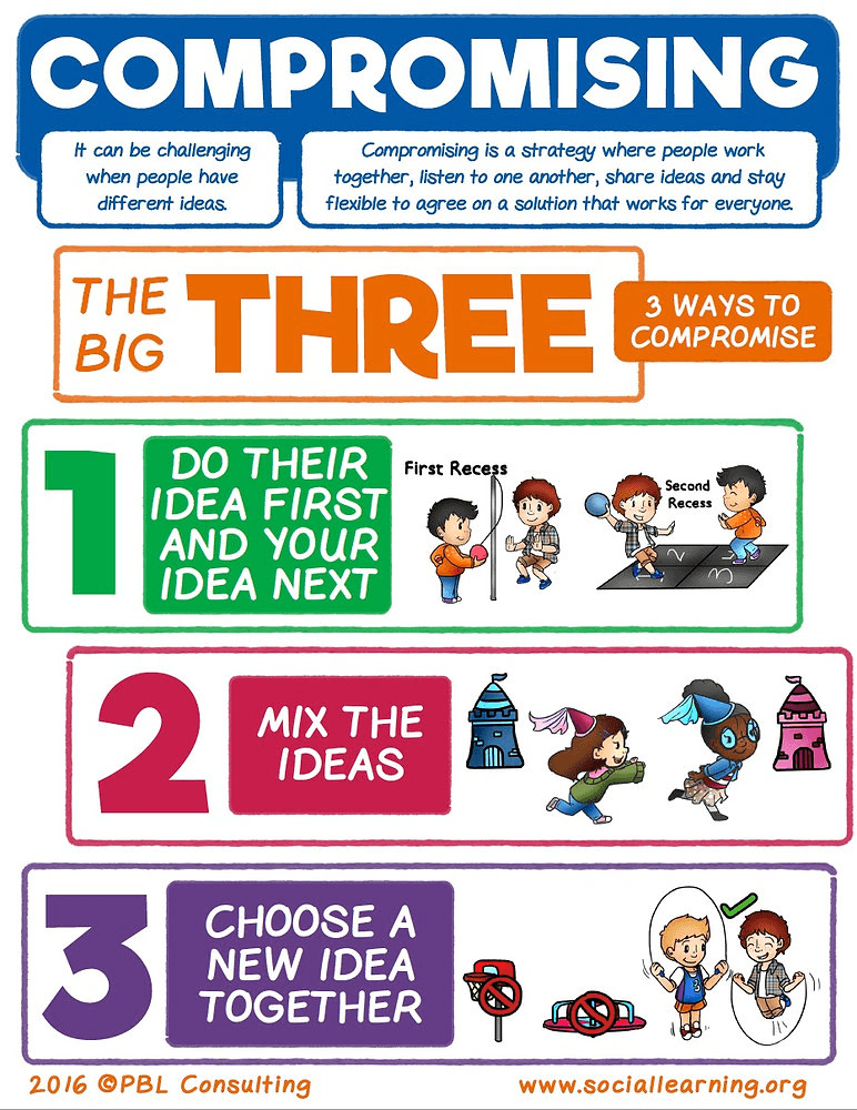 Compromising- not being able to let our option go or being stuck on one option or thing you want