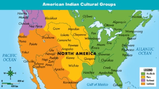 Which answer arranges American Indian groups in the order in which they settled from north to south to east?