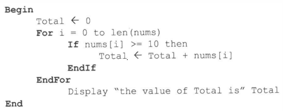 Finds the sum of all numbers in an array that are equal to or higher than 10.