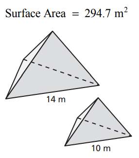The solids are similar. Find the surface area of the smaller solid. Round your answer to the nearest tenth.