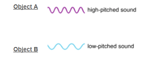 Describe the wavelengths of the sound from object A and how it compares to the sound from object B