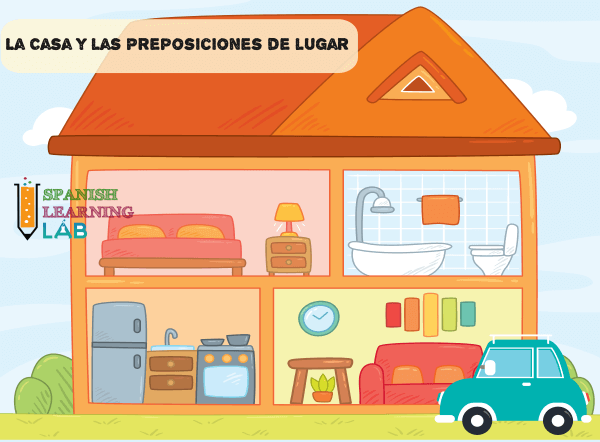 La lámpara está al lado de/ a la derecha de/ cerca del sofá.