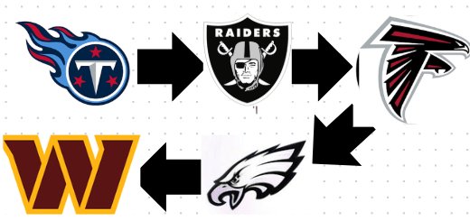 1.Browns 2.Bears 3.49ers 4.Jaguars 5.Titans