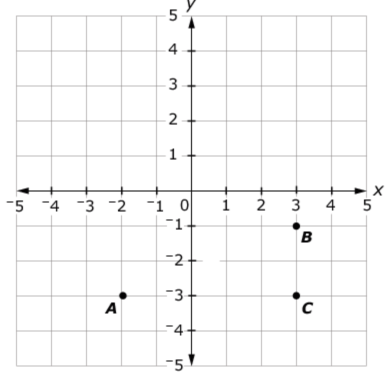 This grid shows the location of three points. Enter the distance, in units, between point A and point C.