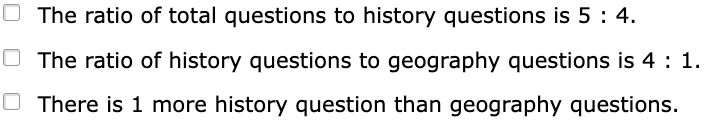 The ratio of history questions to total questions is 4:5.