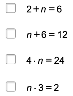 Select all equations that have n=6 as a solution