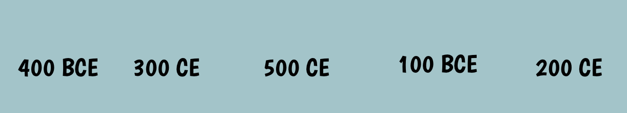 400 BCE, 100 BCE, 200 CE, 300 CE, 500 CE