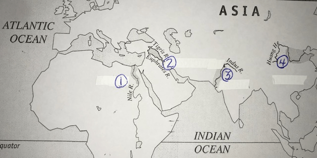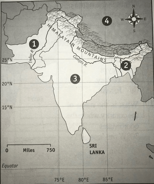Which country is located at 20 N and 80 E? (Egypt, China, Mesopotamia, India)