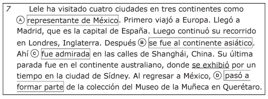 Lee la pregunta y el párrafo 7 de la lectura. Luego escoge la respuesta correcta.