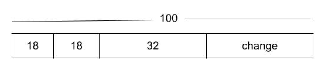 Scott bought two chairs for $18 each and a table for $32.  He paid with a $100 bill.  Draw a strip diagram and write the equations you would use to solve the problem.