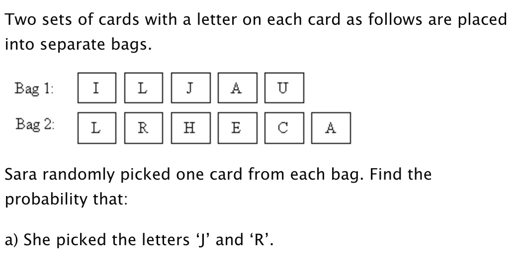 If a bag has 3 red balls, and 5 green balls, what is the probability of randomly picking one red ball out of the bag?