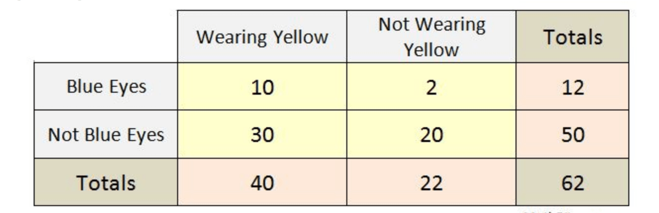 what is the probability of a student having blue eyes IF they were not wearing yellow?