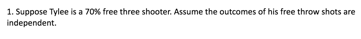 What is the probability that Tylee misses one and makes two free throws?