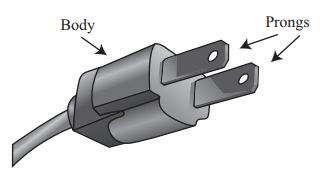 The picture below shows an electrical plug with a plastic body and metal prongs.