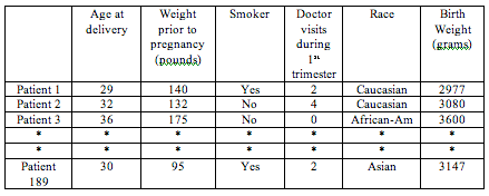 The table below has this number of quantitative and categorical variables. (count them separately)