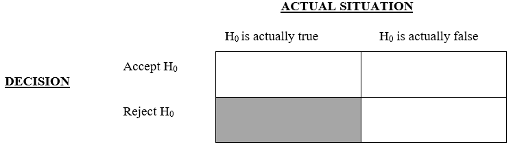 accepting H0 when it is actually false
