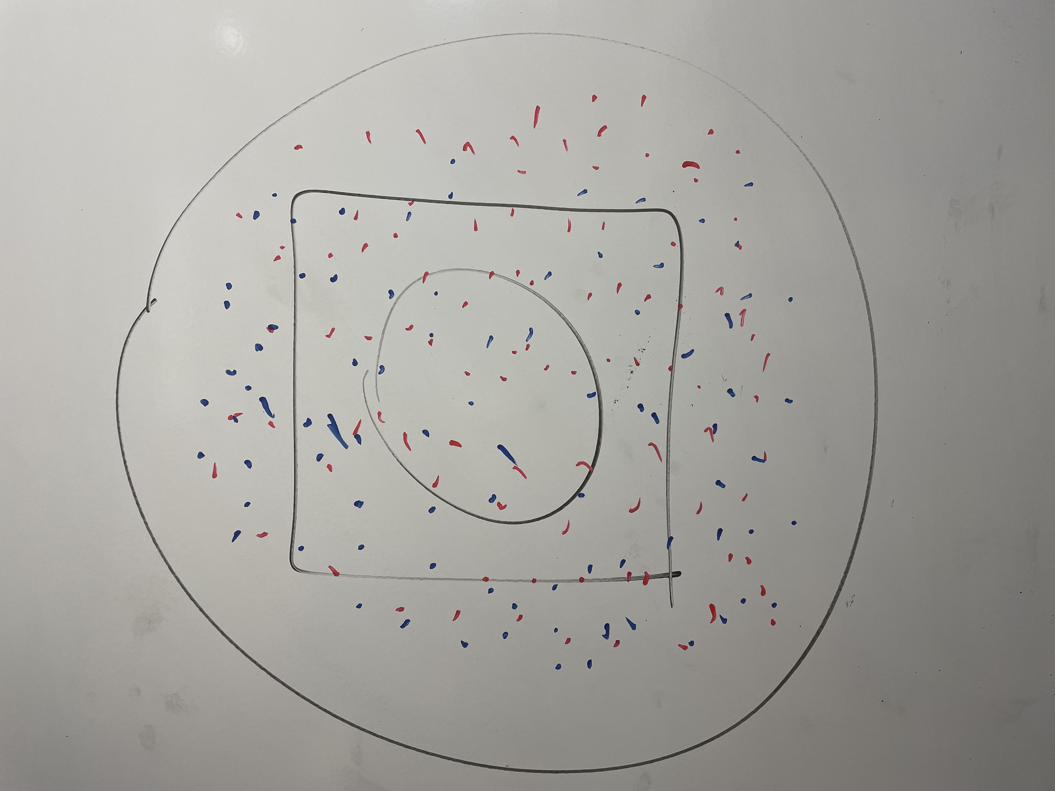 If the larger circle in the image above represents the population and the smaller circle represents a sample, what does the box represent, and is the sample roughly representative of the population?