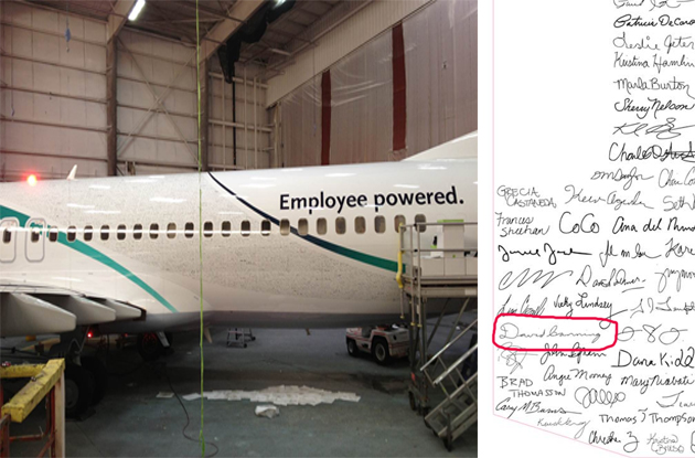 Which STS employee has their signature on an Alaska Airlines aircraft?