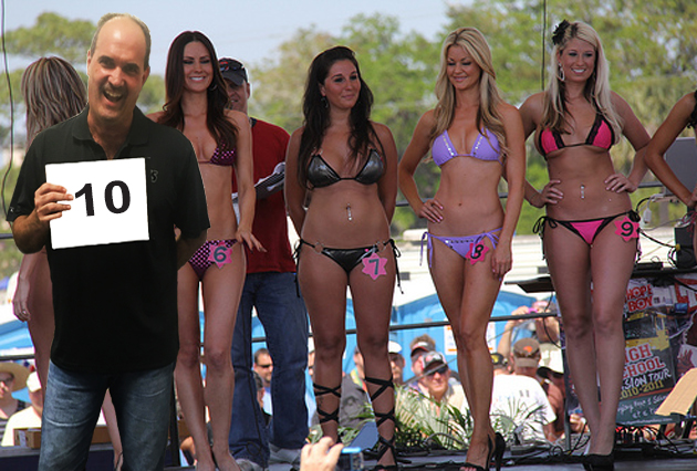 Which STS Employee judged a Hawaiian tropic swimsuit contest?