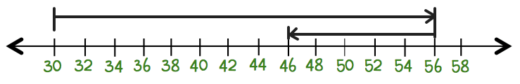 What is 30 + 26 = 56 and 56 - 10 = 46.
