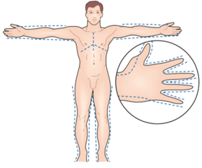 Suspect injury to this nerve if the patient complains of pain here after laparoscopic hernia repair.
