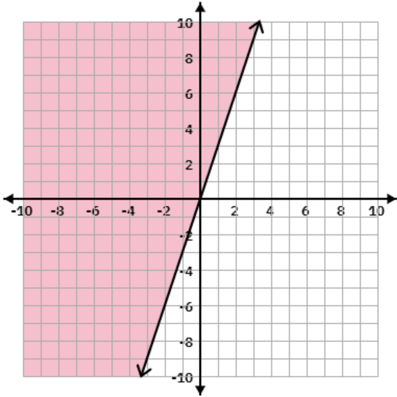 Does your graph start at y=0, have a solid line, a slope of -3/1 and shaded above the y-intercept?