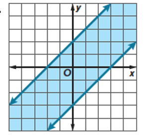 Draw an example of a system of inequalities that are parallel lines but do have a solution set.