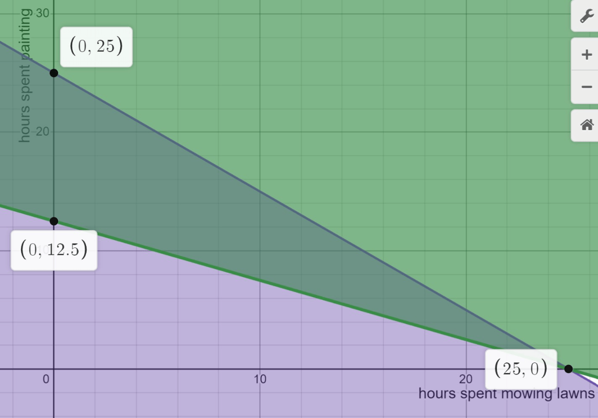 (0,25) means if he spent all 25 hours painting he would have earned  $1000 (25*40=1000)
