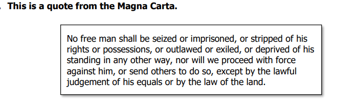 The Magna Carta helped bring democratic ideas to England. Which idea found in the Magna Carta is also included in the United States Constitution?