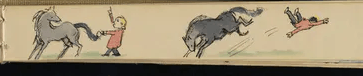 Note: While Mauice Sendak himself said he was unable to draw horses, he may have changed the horses to beasts for another reason. Below is a mock-up of the original concept, where the child pulled on the tails of the horses and was then kicked into the air and out of his clothes!