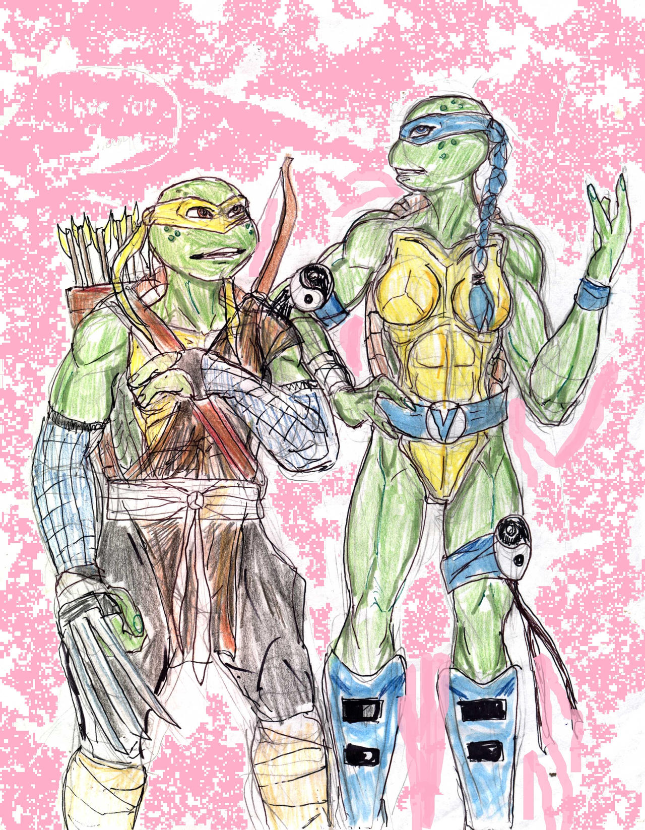 This turtles favorite toppings are pepperoni, ham, pineapple, and jalapeño.