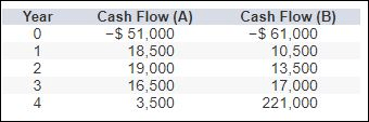 What is the internal rate of return (IRR) of these cash flows if the required return is 18%?