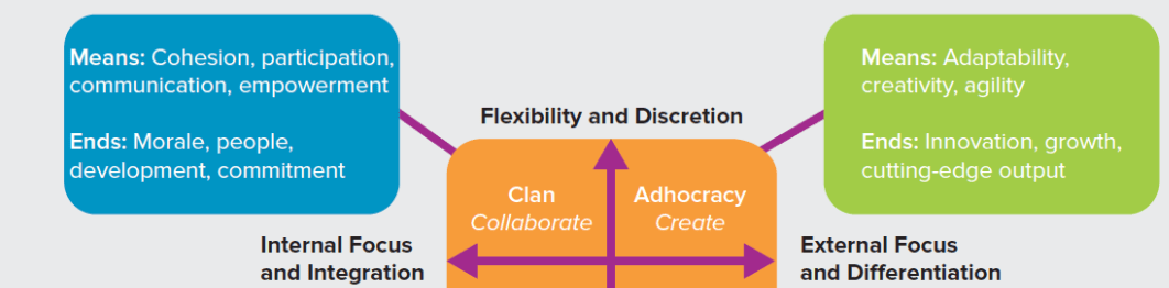 In the competing values framework, what two directions are driven by stability and control (hint - bottom two missing in this diagram).