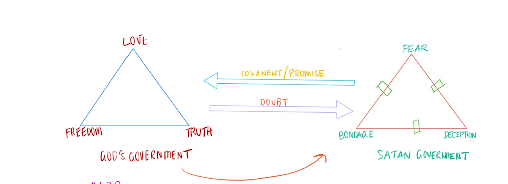 Describe/Draw out the diagram of the governments. What causes the government of God to morph into the government of satan?  What causes the vice versa?