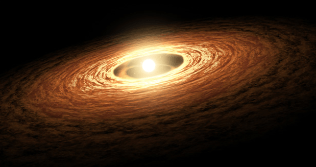 What is small bits of dust were sticking together forming larger and larger rocks until finally Earth was formed?