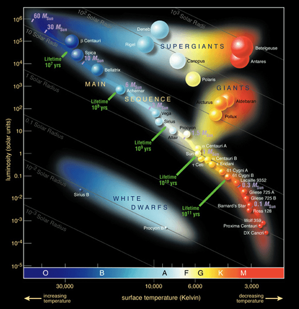 HR-Diagrams show how different mass stars evolve. These are three of the features of main sequence stars shown on an HR-Diagram