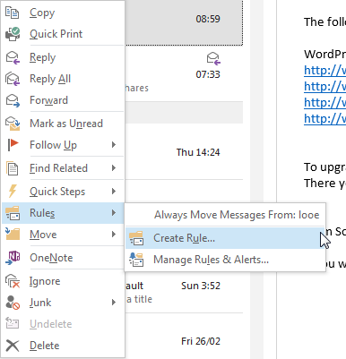 ____ are a way to have incoming (or outgoing) messages sorted, filed, marked, or otherwise handled automatically. You teach Outlook what to look for and what to do when it sees a message that meets the conditions you've set.