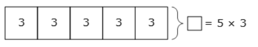 The roller coaster at an amusement park has 5 cars. Each car can hold 3 people. Which strip diagram and equation represents the total number of people that can ride the roller coaster at the same time?