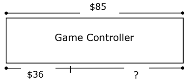 Terence wants to buy a new game controller that costs $85. He has saved $36, as shown in the model below.